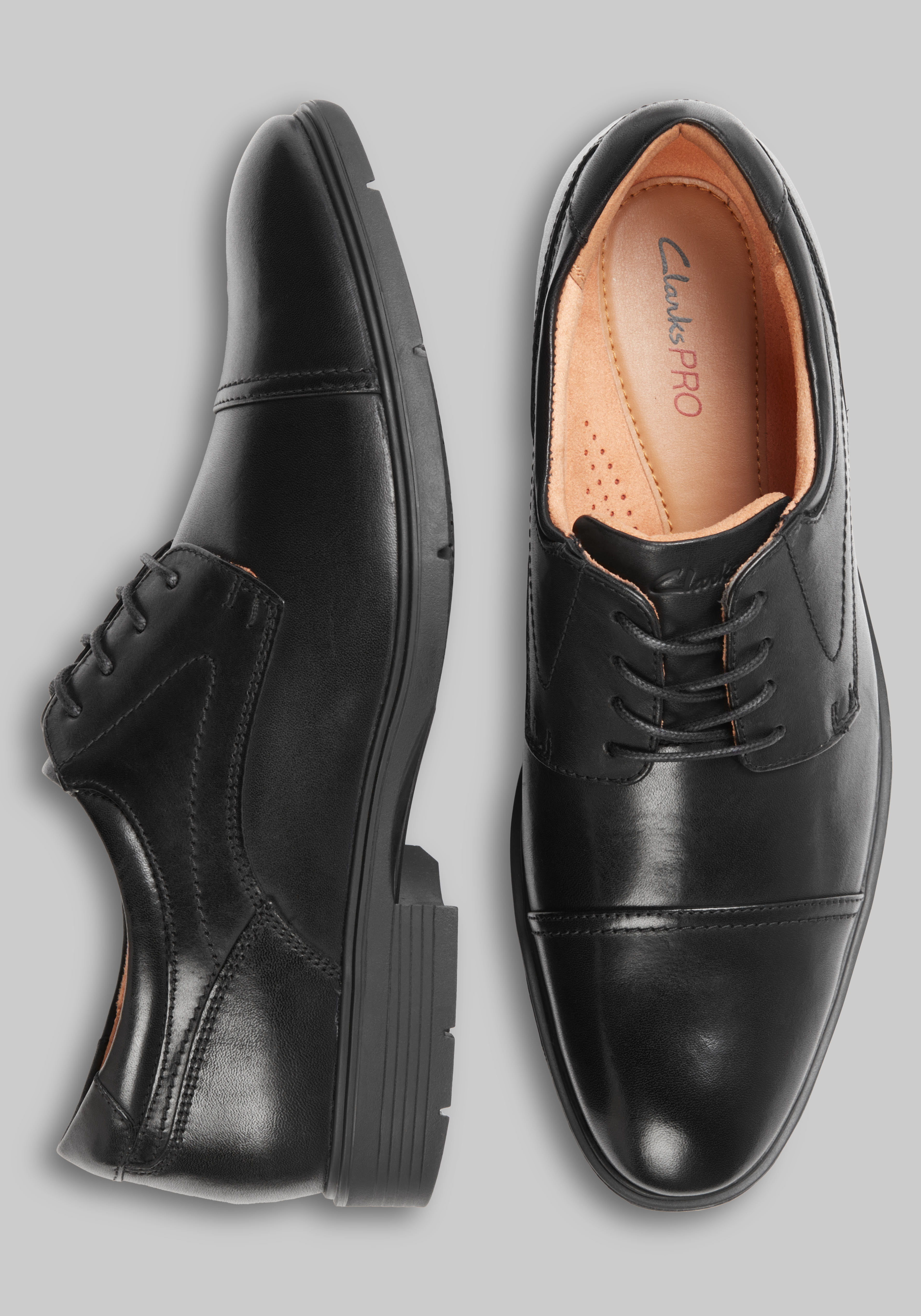 These Oxfords from Clarks are a stylish and sophisticated shoe that effortlessly combines classic design with modern comfort. Made from premium leather, the feature a refined cap toe detail, adding an extra layer of elegance to your wardrobe. Equipped with Cushion Soft technology and an ortholite footbed, they provide all-day comfort and support, making these shoes ideal for long hours at the office or special occasions. Additionally, the durable rubber outsole ensures superior traction.