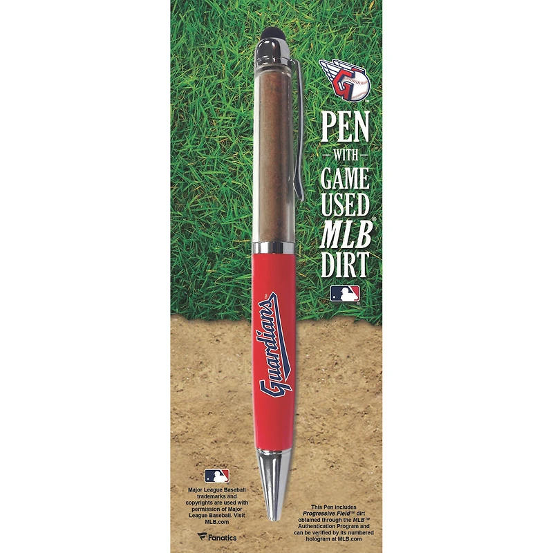 This pen comes with game-used dirt from a Cleveland Guardians game. The dirt was obtained under the auspices of the MLB Authentication Program and can be verified by its numbered hologram at MLB.com. The product is officially licensed by Major League Baseball.