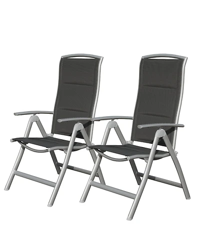 Clihome Patio Folding Chairs Set of 2, Aluminium Frame Outdoor Reclining Patio Chairs Textilene Fabric Seat, Dark Gray