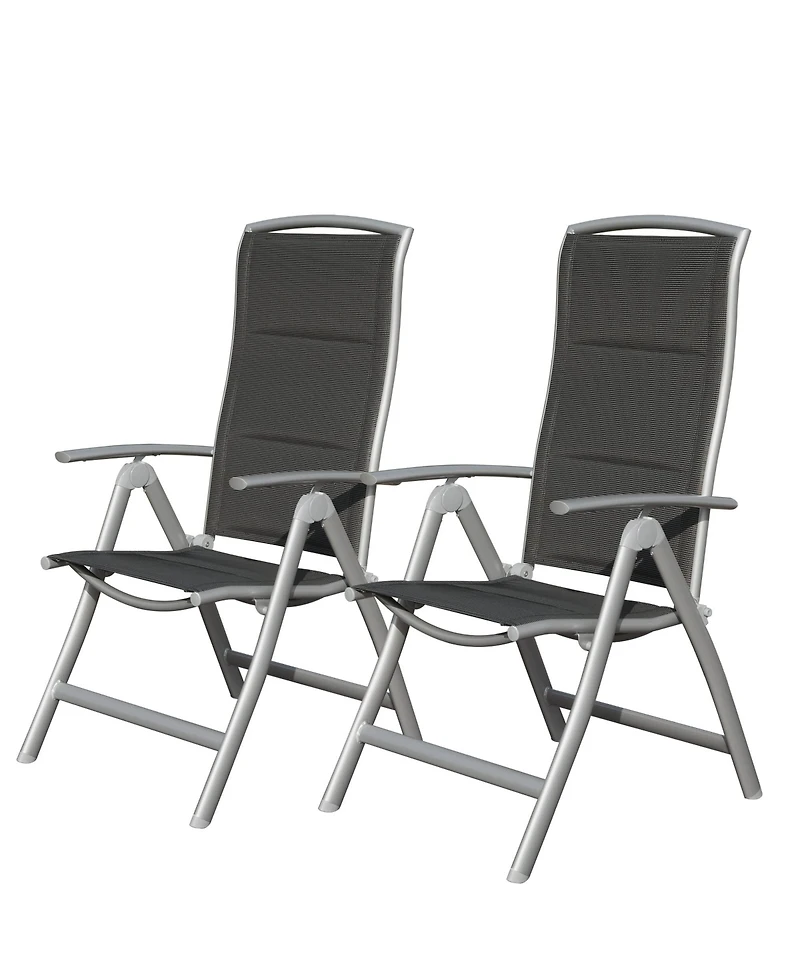 Elevate your outdoor lifestyle with this 2-pack of premium folding chairs that balance high-end style and unbeatable functionality. Crafted with a sleek silver aluminum frame and soft deep gray fabric, these chairs bring modern elegance to any patio, campsite or travel destination while delivering exceptional comfort. The thickened aluminum construction offers remarkable durability and rust resistance, supporting up to 350 lbs so you can enjoy long-lasting use through seasons of outdoor adventures. Designed for convenience, the foldable structure allows easy storage in closets or trunks, making them perfect for camping trips, beach outings, road trips or moving days.