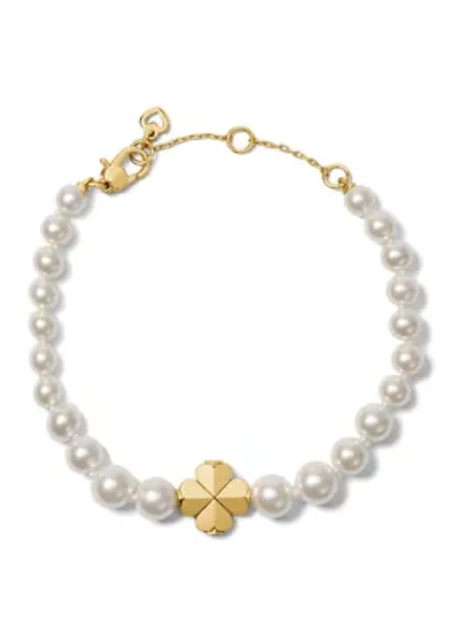 Macy's Silver-Plated Beaded Clover Charm Stretch Bracelet
