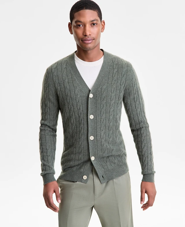 Club Room Men's Regular-Fit Cable-Knit 100% Cashmere Cardigan, Macy's Exclusive