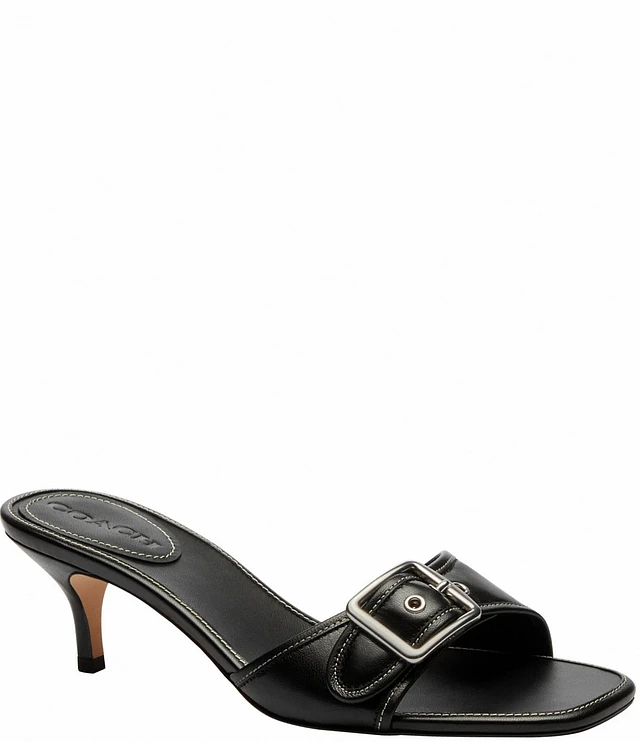COACH Margot Leather Buckle Hardware Slide Sandals