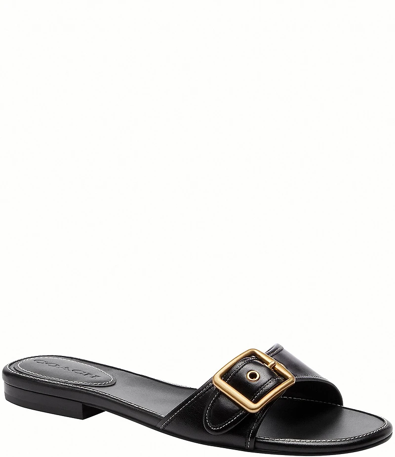 COACH Margot Leather Buckled Flat Slide Sandals in Franklin, TN