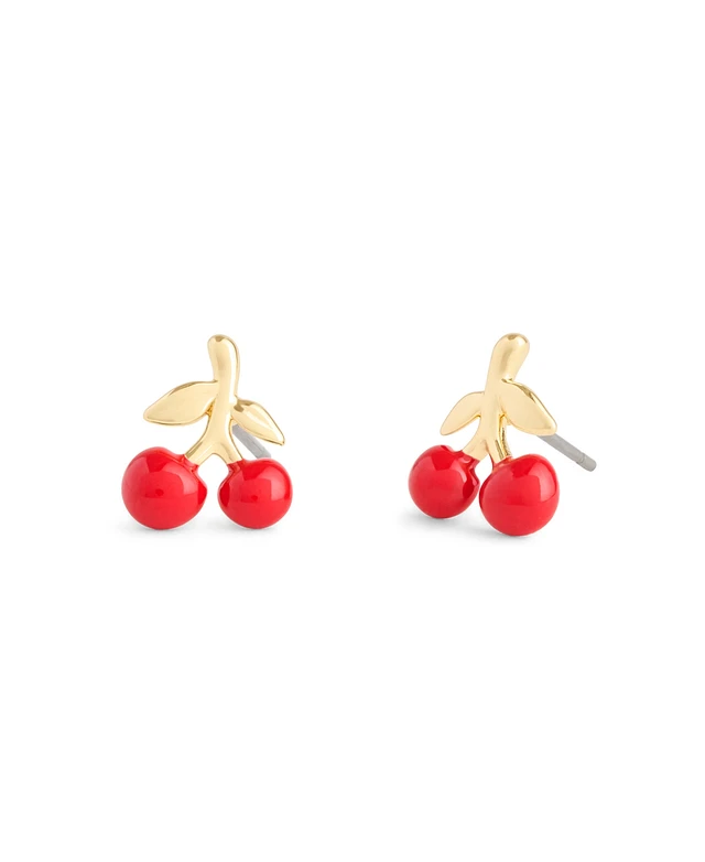 Coach Red Enamel Vintage Charms Cherry Stud Earrings