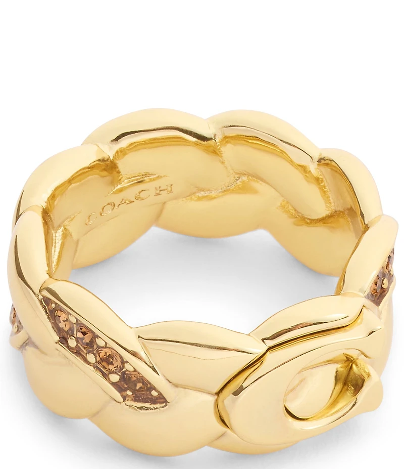 From COACH, this ring features: Band ring Brass/glass Signature C motif Minimal stones Approx. 0.4" band width Imported.