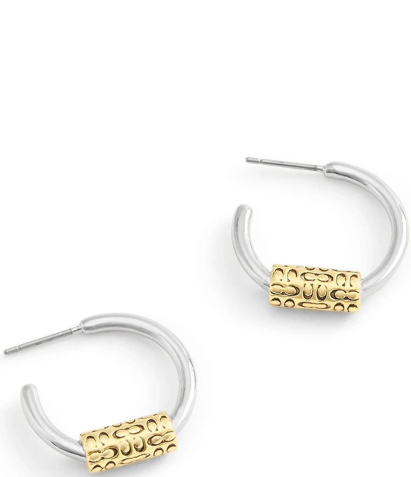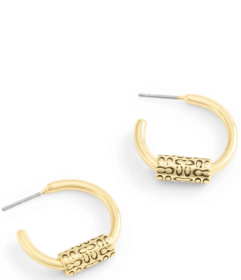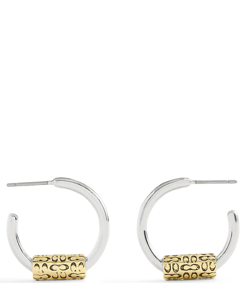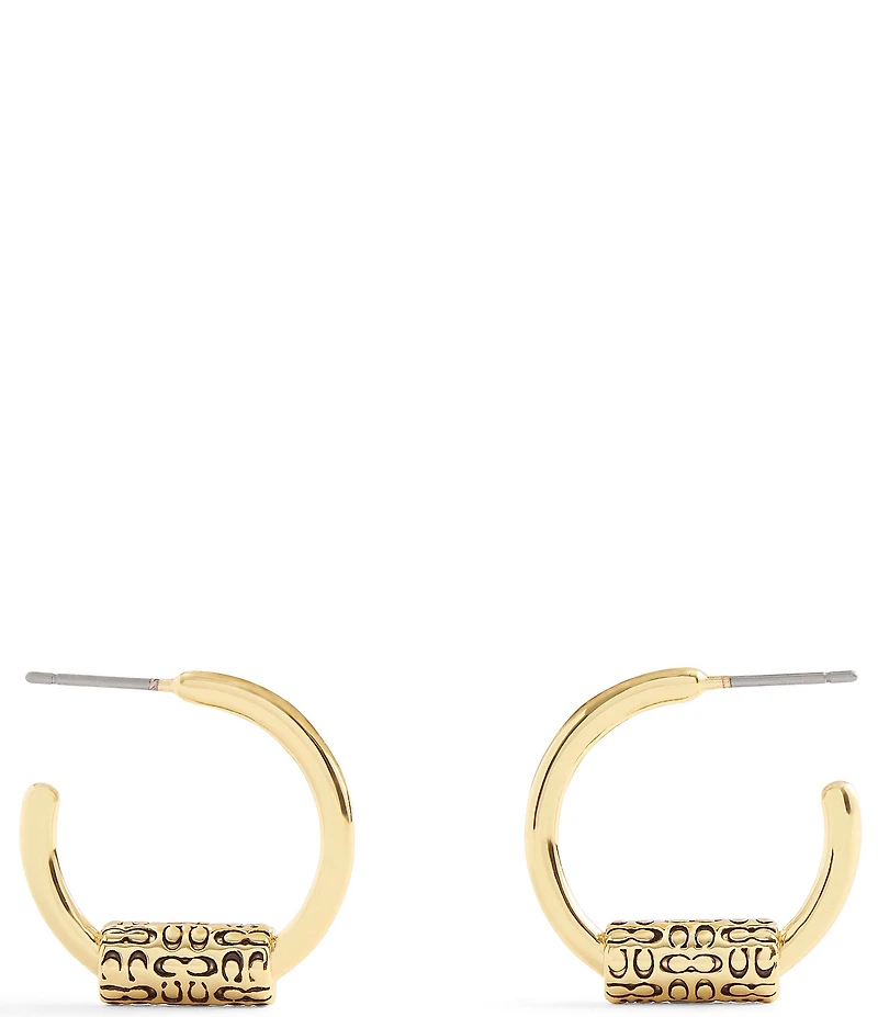 From COACH, the Signature Quilted Tube Huggie Hoop Earrings feature: Brass Hypoallergenic titanium post closure Adorned with quilted signature sculpted C motif Approx. 0.75" L x 0.2" W x 0.6" D Imported.