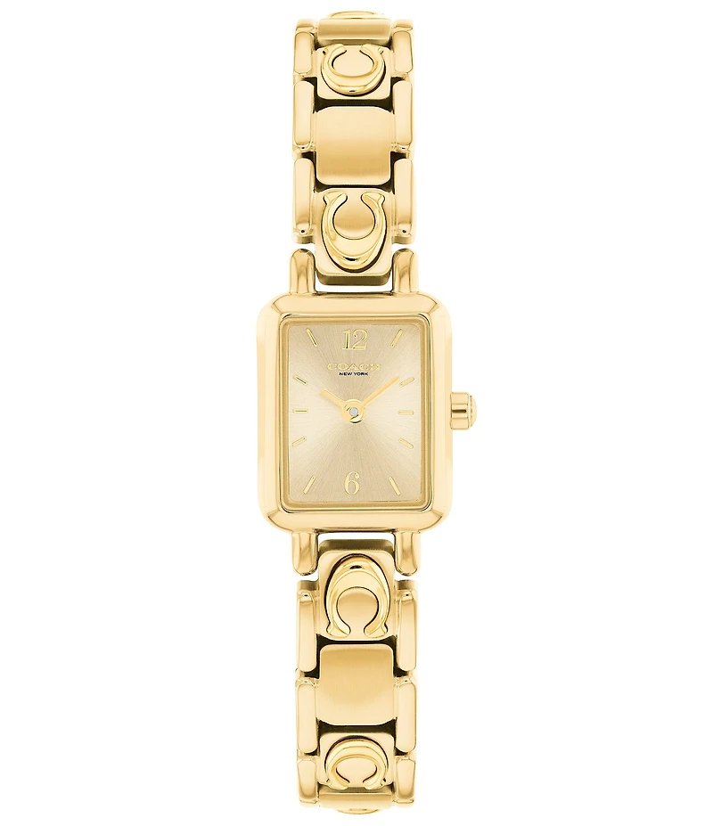 From COACH, this women's watch features: Stainless steel bracelet and case Sunray dial Mineral crystal Deployment closure Quartz analog movement Case diameter approx. 15.5mm x 19mm Water-resistance: 3B Imported.