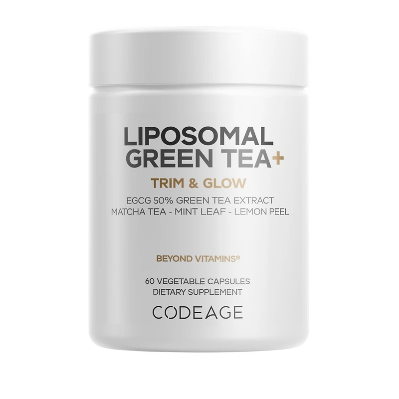 Liposomal Green Tea with EGCG & Organic. Features: Codeage Liposomal Green Tea+ supplement provides green tea extract standardized to 50% EGCG and 98% polyphenols for a concentrated profile.. This green tea capsule supplement includes organic matcha green tea, peppermint leaf, and lemon peel to create a unique botanical blend.. This EGCG supplement and matcha green tea powder in capsule formula also features Codeage Helix liposomal delivery with non-GMO sunflower lecithin for an elevated experience.. This green tea extract capsules supplement is vegan, non-GMO, dairy, soy, and gluten-free.. Codeage Liposomal Green Tea+ is manufactured in the USA with global ingredients in a cGMP-certified facility for quality and purity.. : :
