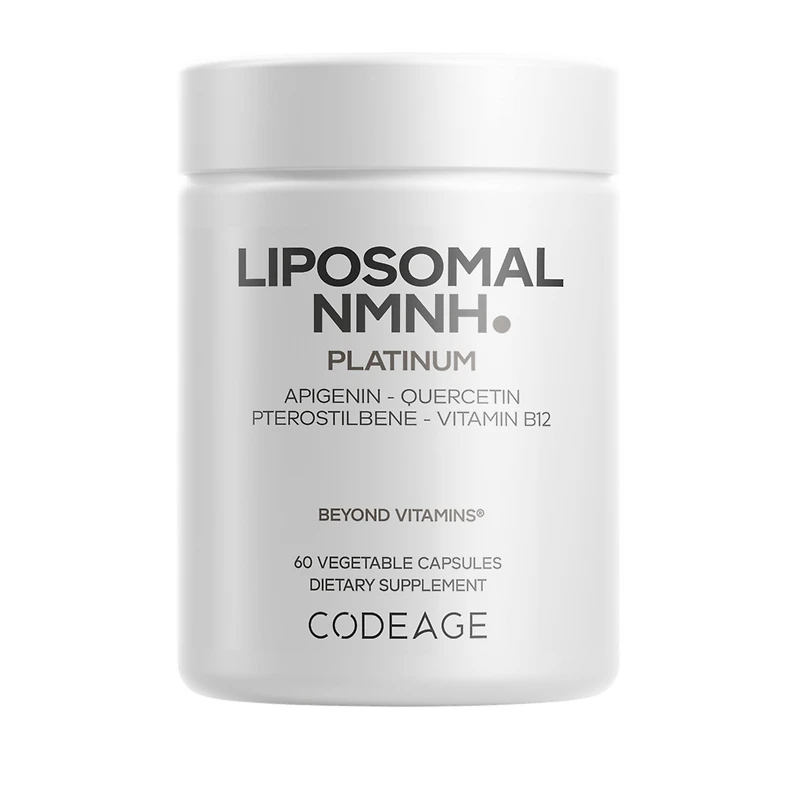 Liposomal NMNH with Polyphenols & B Vita. Features: Codeage Liposomal NMNH Platinum supplement delivers 500 mg of NMNH (dihydronicotinamide mononucleotide). NMNH is studied for its role as a direct precursor to NAD+, a coenzyme naturally present in all living cells and associated with various biological functions.*. This NAD+ supplement also features vitamin B2 riboflavin in its coenzyme form (riboflavin-5-phosphate) and methylated vitamin B12 (methylcobalamin), offering premium ingredients in a sophisticated NMNH supplement blend for a fundamental blueprint.. Codeage Liposomal NMNH Platinum includes a selection of plant-based compounds, such as quercetin, apigenin from chamomile, and pterostilbene, designed to complement the NMNH formula in a high-quality composition.. This NMNH supplement in capsule form features liposomal delivery with phospholipids derived from non-GMO sunflower lecithin. Each bottle provides 30 servings for 1 month of supply.. Codeage Liposomal NMNH Platinum supplement is vegan, non-GMO, and free from dairy, soy, and gluten. This NMNH and Riboflavin supplement is manufactured in the USA using global ingredients in a cGMP-certified facility for quality and purity.. : :