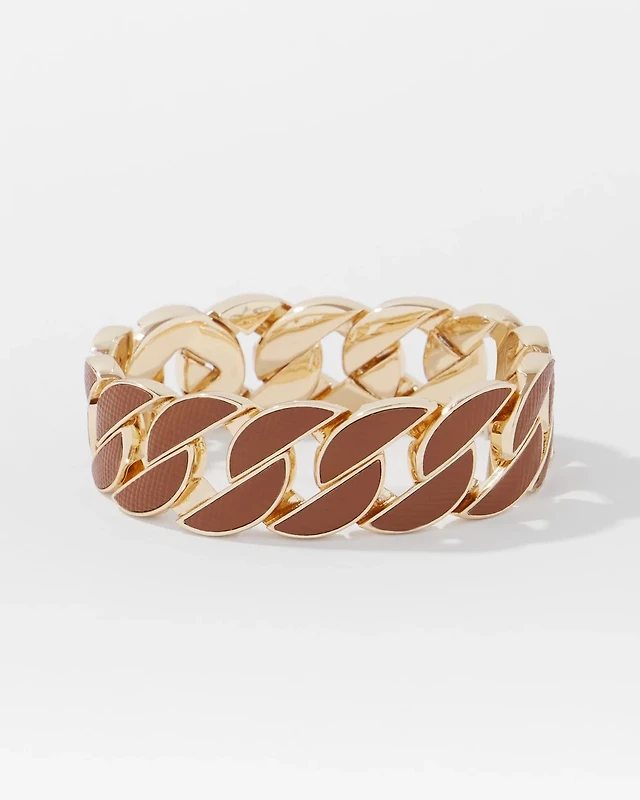 Cognac Textured Leather Link Bracelet