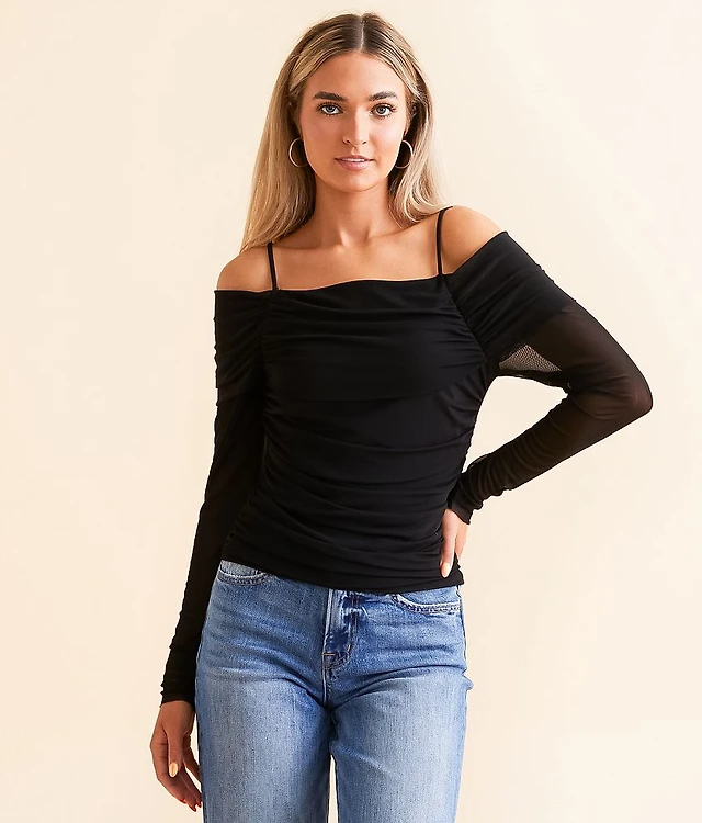 Ruched fabric lined raw edge top Adjustable straps Bust measures 40" on size small Body length up to 20" on size small
