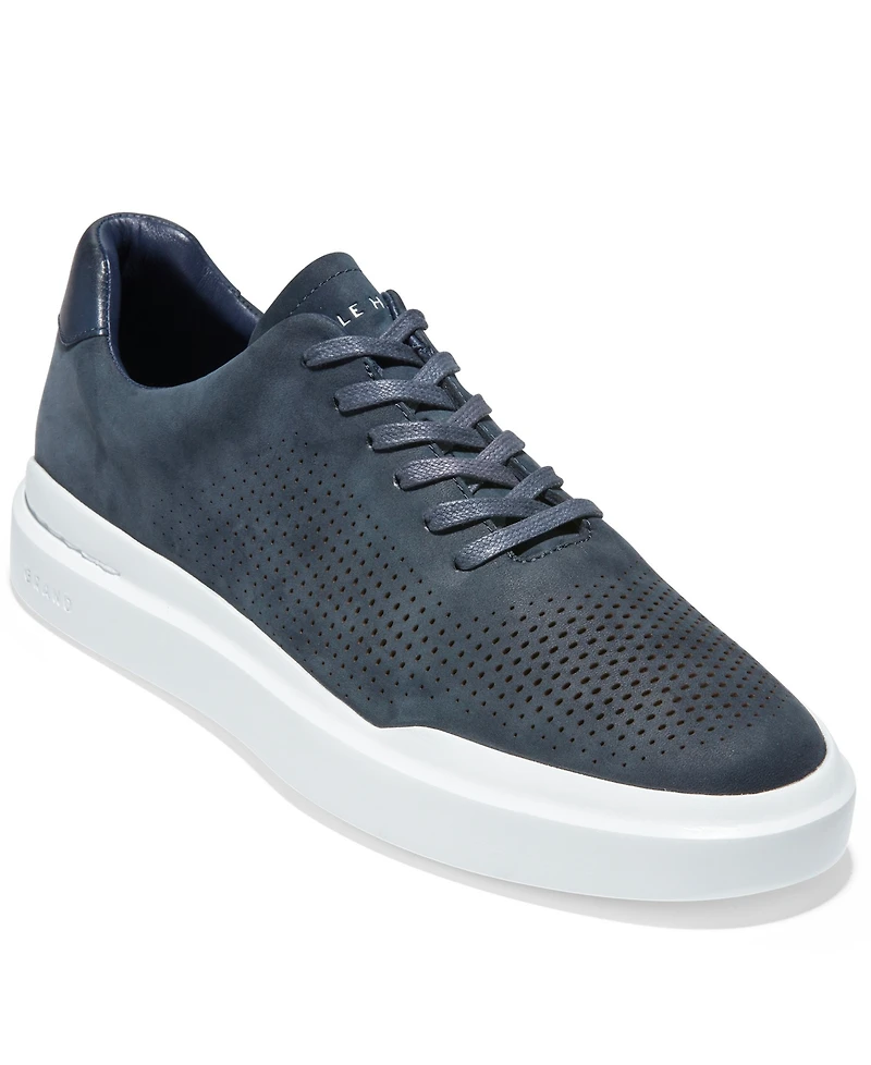 Go modern with Cole Hann's GrandPro rally sneakers. Laser perforations across their leather uppers present a unique look while offering enhanced breathability. Adding to their appeal is an Ortholite footbed which delivers cushioned comfort for superior walkability.