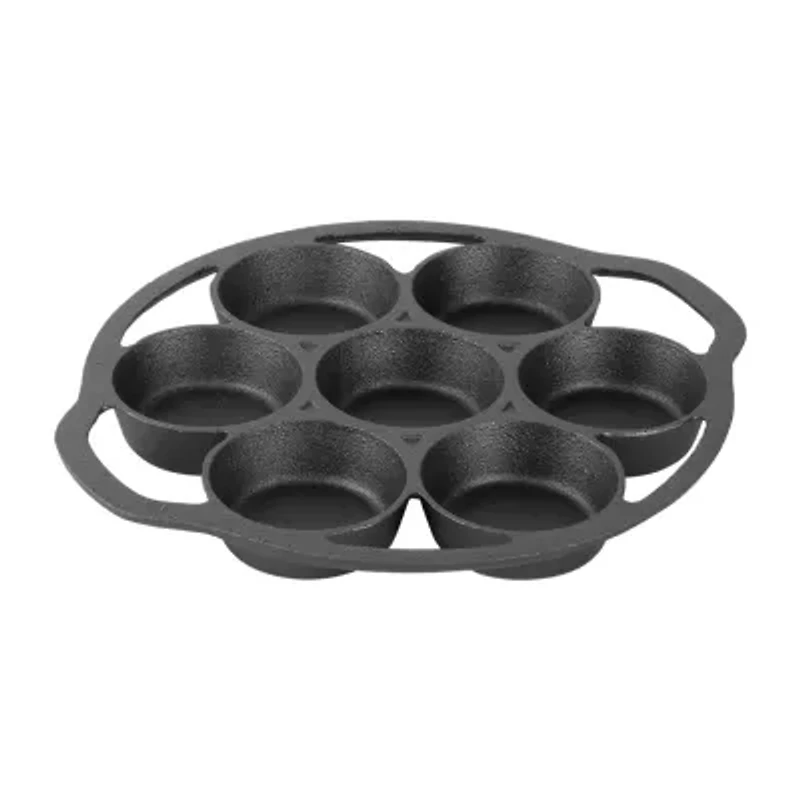 Cooks evenly: thanks to its expert craftsmanship, this biscuit or muffin pan absorbs heat slowly to make sure that each of the seven 3.5" x 1" spaces thoroughly cooks your favorite recipes evenly. This cast iron cookware offers consistent, even heating and great heat retention.