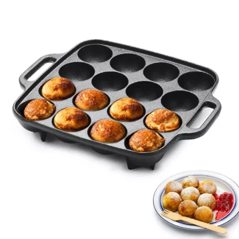 This commercial chef aebleskiver cast iron pan (9.92" x 8.3" x 1.8") brings the deliciousness of homemade baked goods like biscuits, doughnut holes, desserts, cake pops, Japanese Takoyaki & even Dutch poffertjes. The cast iron seasoning of this doughnut pan (4.2 lbs.) Is Preseasoned and well-oiled to ensure slow, even heating and a resistance to rust. Our cake pop maker machine is made of sturdy, excellent cast iron construction that is safe to use on gas, electric, & induction stoves as well as grills and even campfires. Who doesn't love a homemade batch of fresh biscuits while camping? Complete with two cast iron side handles for easy mobility, doughnut making is suddenly a breeze! Our Danish aebleskiver pan can be used any time of the year for yourself, dinner party guests, as well as friends and family. Concoct mouthwatering doughnut holes with one of the best dessert pans. With this commercial chef aebleskiver pan cast iron, you can bring the magic and wonder of cultural recipes to your kitchen. Delight your taste buds with quality cooking thanks to our top tier cast iron mini donut pan.