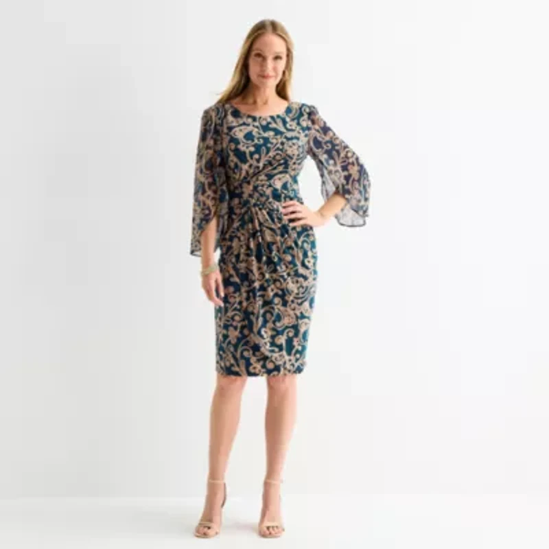Connected Apparel Womens 3/4 Sleeve Scroll Sheath Dress