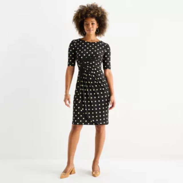 Connected Apparel Womens Short Sleeve Dots Sheath Dress