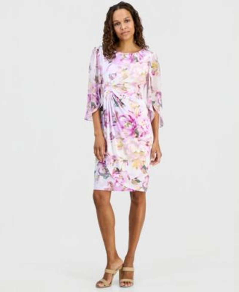Connected Petite Floral Gathered Front Cape Sleeve Dress in Franklin, TN
