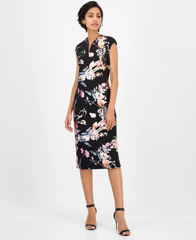 Connected Women's Floral Ponte-Knit Sheath Dress