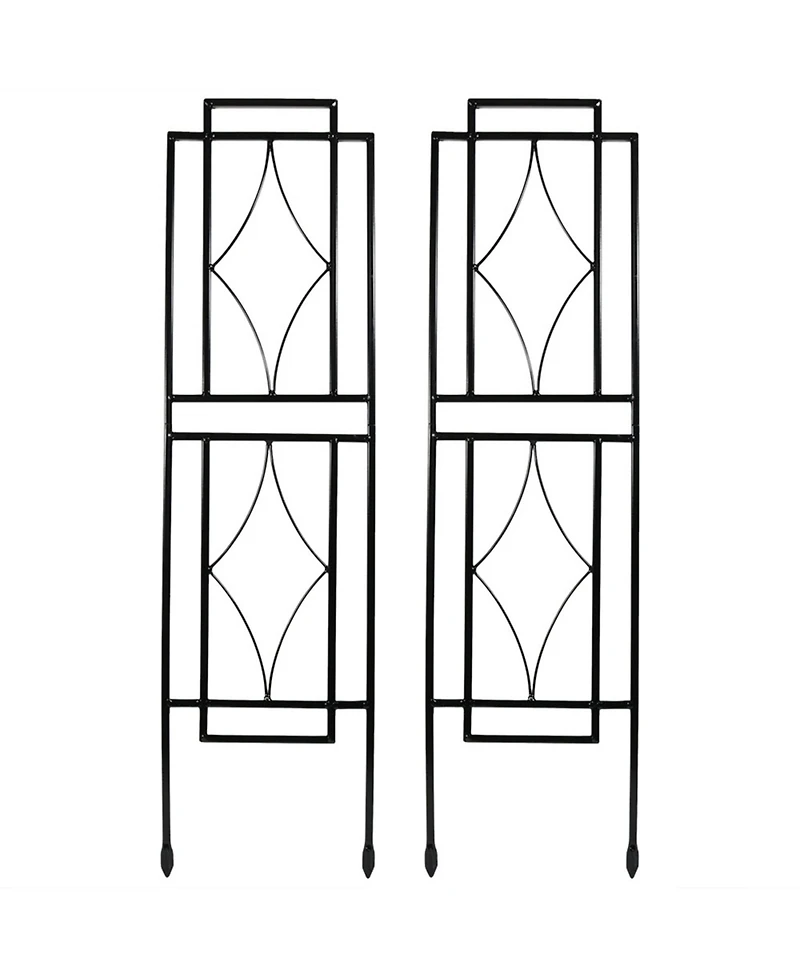 Your climbing plants and vegetables will enjoy and benefit greatly from this decorative outdoor trellis. This trellis will not only aid your plants' vertical growth but will create a stunning display up against any garden wall, patio wall, or other outdoor wall in need of a beautiful and natural focal point. The diamond design inside the rectangular frame of this trellis will add beauty and modern chic elegance to your outdoor area. Made of sturdy steel wire and powder-coated for weather-resistance, this trellis is perfect for outdoor use, ensuring long-lasting use and strength. This metal garden trellis will also help prevent breakage and vegetables from falling off too early. Help your plants climb and create a beautiful, accented feature in your home's outdoor decor with this beautiful diamond garden plant trellis. Standing at 30 inches tall and in a set of 2, this trellis provides plenty of room to allow your plants the best growth options.