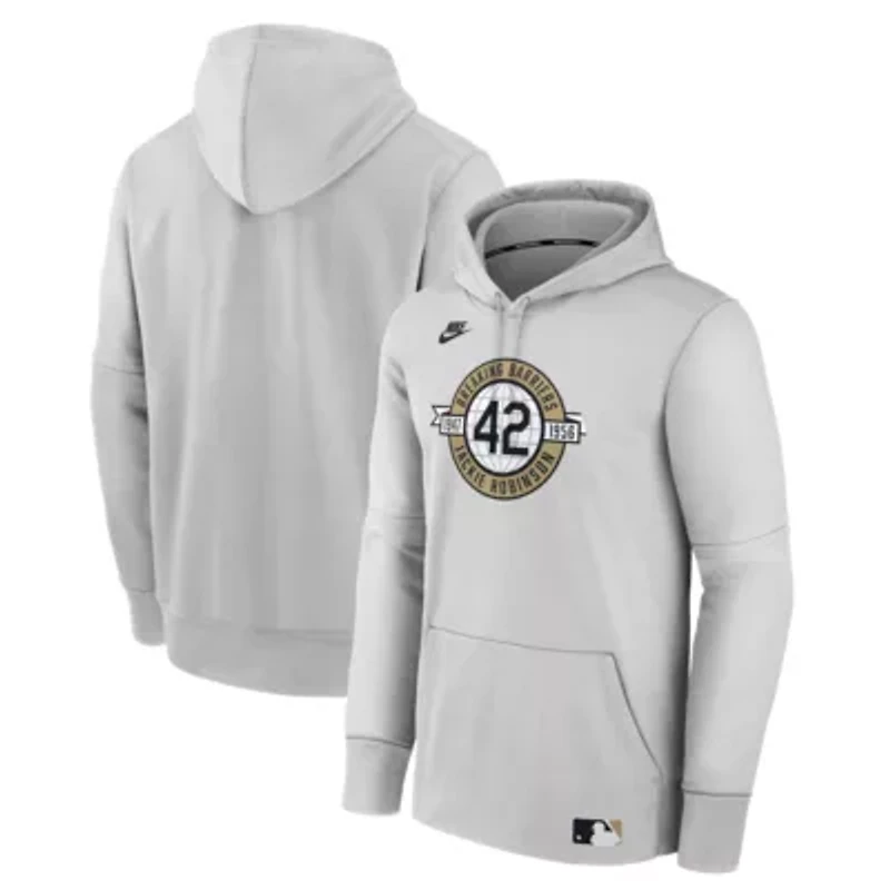 Honor one of the most iconic sports figures with this Brooklyn Dodgers Authentic Collection 2026 Jackie Robinson Day Therma-FIT Hoodie by Nike. It features lightweight, breathable Therma-FIT fabric and a cozy fleece lining to keep you warm as you display admiration for a baseball legend. Removable sleeves allow you to customize the look of this Jackie Robinson hoodie, adding a versatile outer layer to your wardrobe. Authentic Collection is same gear worn by the players, coaches and team staff; Brand: Nike; Commemorative details in silicone print at center chest; Fleece lining adds cozy warmth and softness; Front pouch pocket; Hooded; Imported; Long sleeve; Machine wash, tumble dry low; Material: 100% Polyester; Officially licensed; Pullover; Removable sleeves with finished seams can be cut above the elbow; cut sleeves cannot be reattached; Standard Fit: Easy and traditional; Therma-FIT technology provides warmth with lightweight, breathable material; Two-panel hood with drawstring; Two-way stretch double pique fabric has a midweight feel (250gsm). VN-Vietnam Imported Material & Care 100%Polyester Machine washable or hand wash for best results