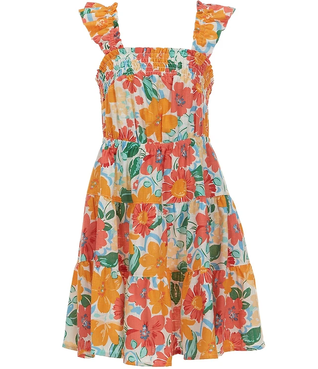 Mac Duggal Big Girls Floral Printed Short Sleeve Ruffle Dress