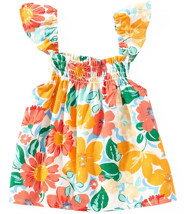 Copper Key Little Girls Floral Printed Flutter Sleeve Top