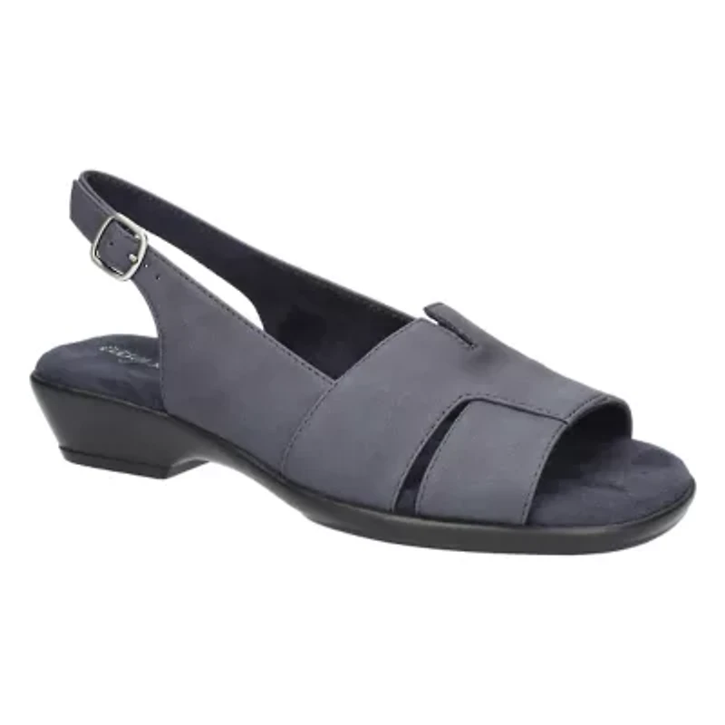 Step into comfort with the Easy Street Corbett slingback sandal. This timeless staple is designed to be the perfect companion for your everyday wardrobe. The v-throat banded design and low block heel create a classic, versatile look that complements any outfit. With a padded comfort footbed and a lightweight, flexible outsole, this sandal offers everything you need to take on your day. The adjustable slingback strap allows for a custom fit. Buckle closure Padded insole China Imported Product Specifications 1.25 W Material Faux Leather