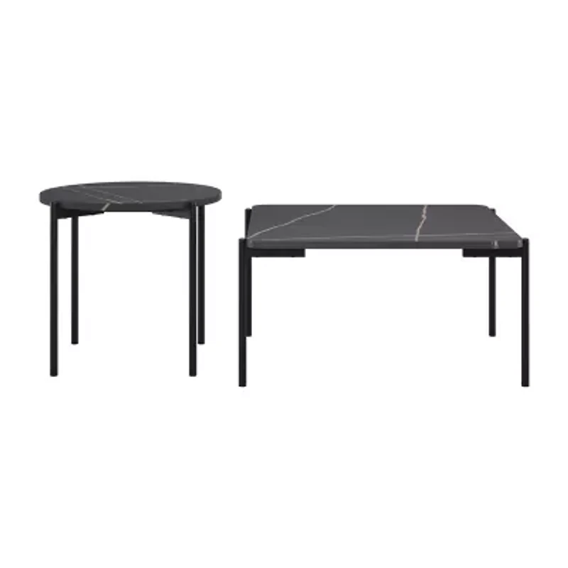 You deserve a living room that's both stylish and functional, and the arlo coffee table set is the perfect way to achieve both. With its smooth tabletop and high-grade marble finish, this set will bring a touch of sophistication to your home. In addition, the smooth surface provides ample space for books, drinks, and more, making it a versatile addition to your living space. And the black powder-coated metal legs are stylish and incredibly durable, ensuring that this set can withstand everyday wear and tear. With both a square coffee table and a round side table included, you'll have the versatility and flexibility to suit your needs, no matter the occasion. Available in two attractive color options - white marble and black marble. Choose the white marble for a classic, elegant look or the black marble for a chic, contemporary feel. Either way, this coffee table set will be the perfect addition to your living room. Not only will this set enhance the look and feel of your home, but it's also designed for small spaces, making it a practical and stylish choice. So why wait? Treat yourself to the beauty and functionality of the arlo coffee table set today and enjoy its benefits every day.