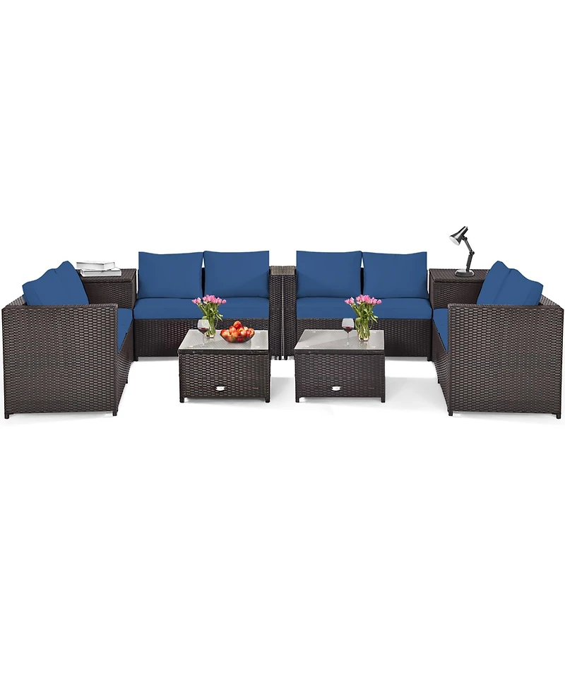 Costway 8PCS Outdoor Patio Rattan Furniture Set Cushioned Loveseat Storage Table Navy