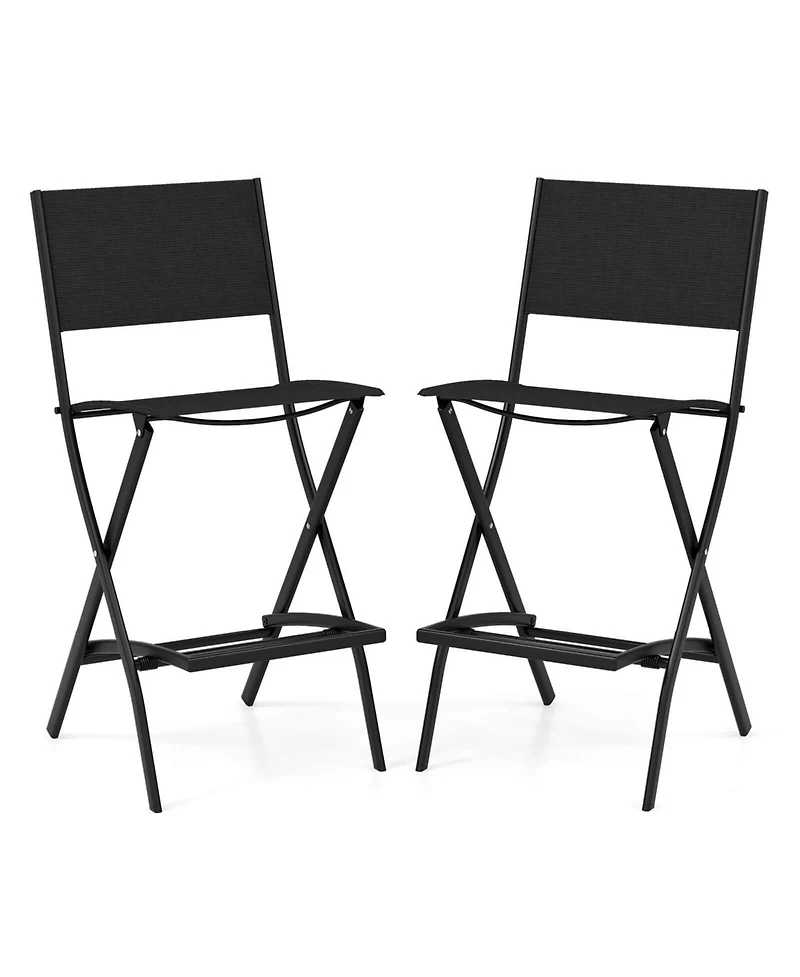 Costway Set of 2 Outdoor Bar Chair Folding Bar Height Stool with Metal Frame