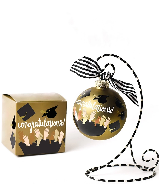 Coton Colors Graduation Glass Ornament with Black and White Stand Set