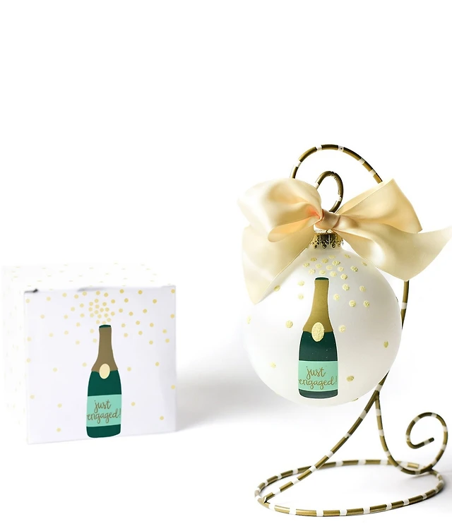 Coton Colors Just Engaged Glass Ornament with Stand Set