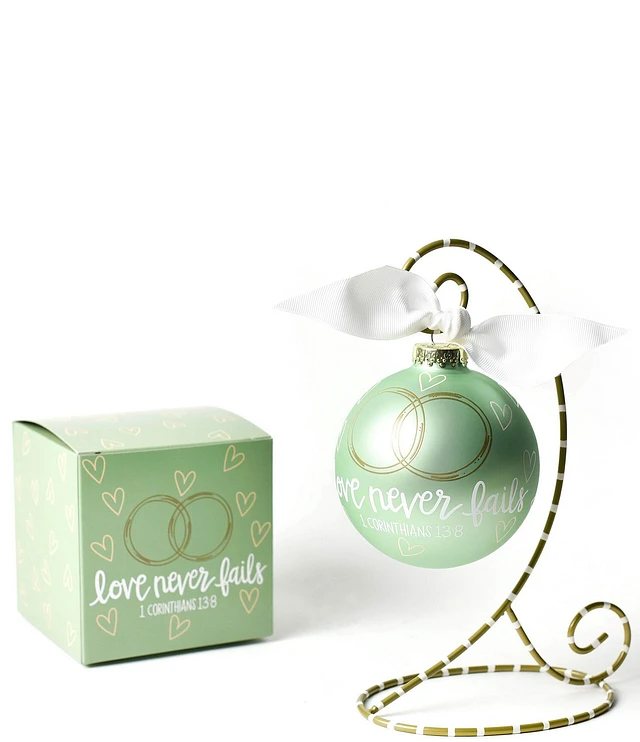 Coton Colors Love Never Fails Glass Ornament with Gold and White Stand Set