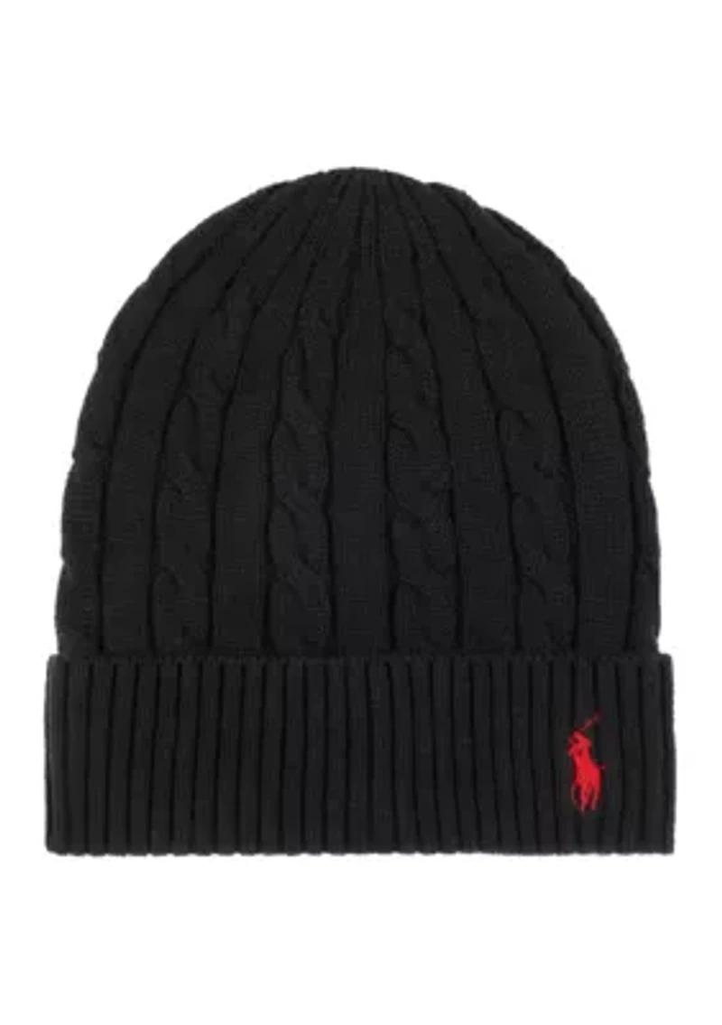 The Cotton Cashmere Cable Beanie is a perfect blend of comfort and luxury, crafted from 95% organic cotton and 5% cashmere for a soft, breathable feel. The cable-knit design offers both texture and warmth, while the signature pony embroidery adds a touch of refinement. This eco-friendly beanie combines timeless style with sustainable materials, making it a versatile accessory for cooler days. Imported Material & Care 95% organic cotton, 5% cashmere Dry clean only
