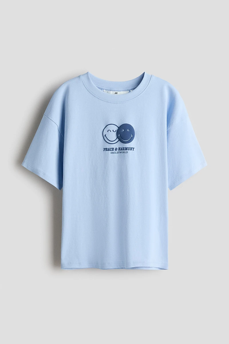 T-shirt in soft cotton jersey with a printed motif at front. Round neckline, dropped shoulders, and short sleeves.