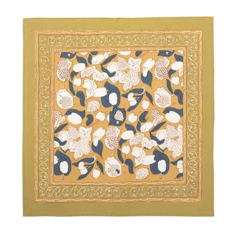 With a nod to the lush splendor of Provençal forests, the Forest Harvest collection features an array of sumptuous fruit amidst richly entwined foliage. The twirling vines and blossoming imagery make a pleasing backdrop to any meal, and this high-quality linen is hand-printed by skilled artisans using a time-honored technique, resulting in a singular piece of craftsmanship. You can pair with other linens from the Forest Harvest collection, or add contrast with solid colors.