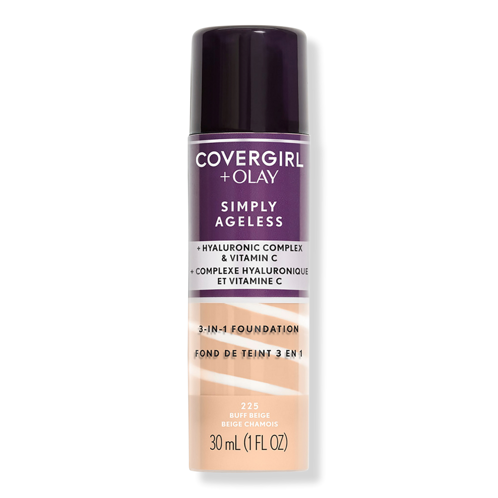 SIMPLY AGELESS 3-IN-1 LQD FDN BUFF BEIGE. Benefits: Reduces Appearance Of Wrinkles - The hydrating formula works to reduce the appearance of fine lines and wrinkles. Improves Tone - Saturates skin with moisture to improve tone, leaving a flawless finish. Find Your Shade - Easily select your shade by number or look at the Shade Finder. Key Ingredients: Hydrating Formula - Hyaluronic complex and vitamin C deliver firming hydration. :