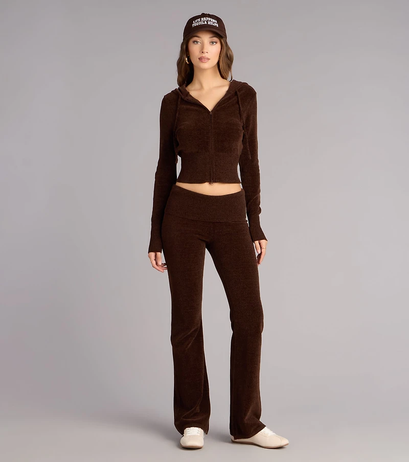 Your off-duty era just found its new uniform. These chenille knit flare pants deliver that perf lounge-all-day vibe with a fit that still looks intentionally put together.