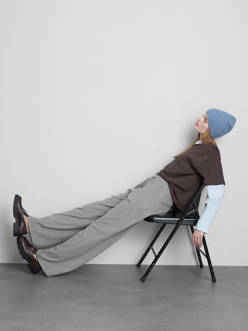 Wide-leg joggers with an elasticated, drawstring waist and soft textured fabric