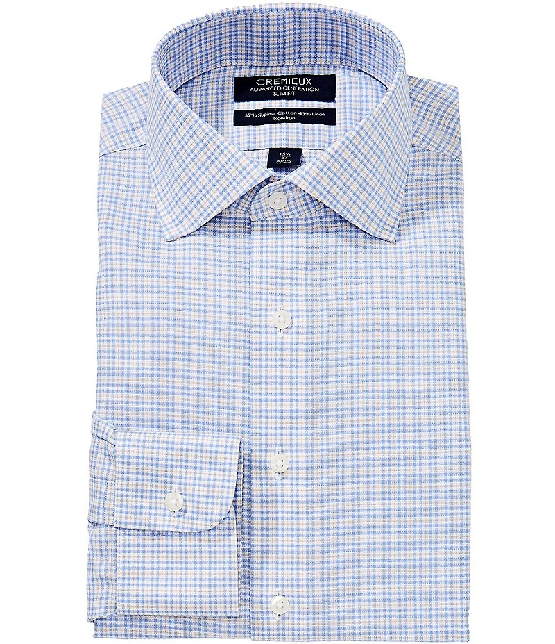 From Cremieux, this dress shirt features: Dobby Royal Oxford fabric Allover print Slim fit Spread collar Check pattern Long sleeves with button barrel cuffs Button front closure Continental mill/yarn dye Cotton/linen Machine wash/tumble dry Imported.