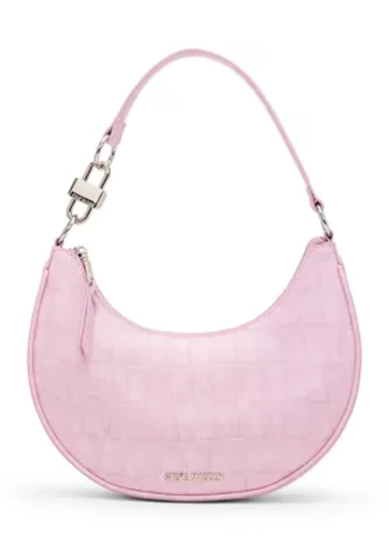 Cool, compact and totally on trend, the shoulder bag from Steve Madden nails that off-duty model look with its sleek curves, minimalist silhouette and throw-it-on-and-go attitude. Designed to sit just right on the shoulder, this bag brings effortless edge to any outfit. 9" drop shoulder strap Exterior: mixed metal hardware with pear, details Interior: back wall zipper pocket; interior back wall slip pockets Imported Product Specifications 8.25" L x 3" D x 8" H Material & Care Polyurethane Clean with a damp cloth or soft brush