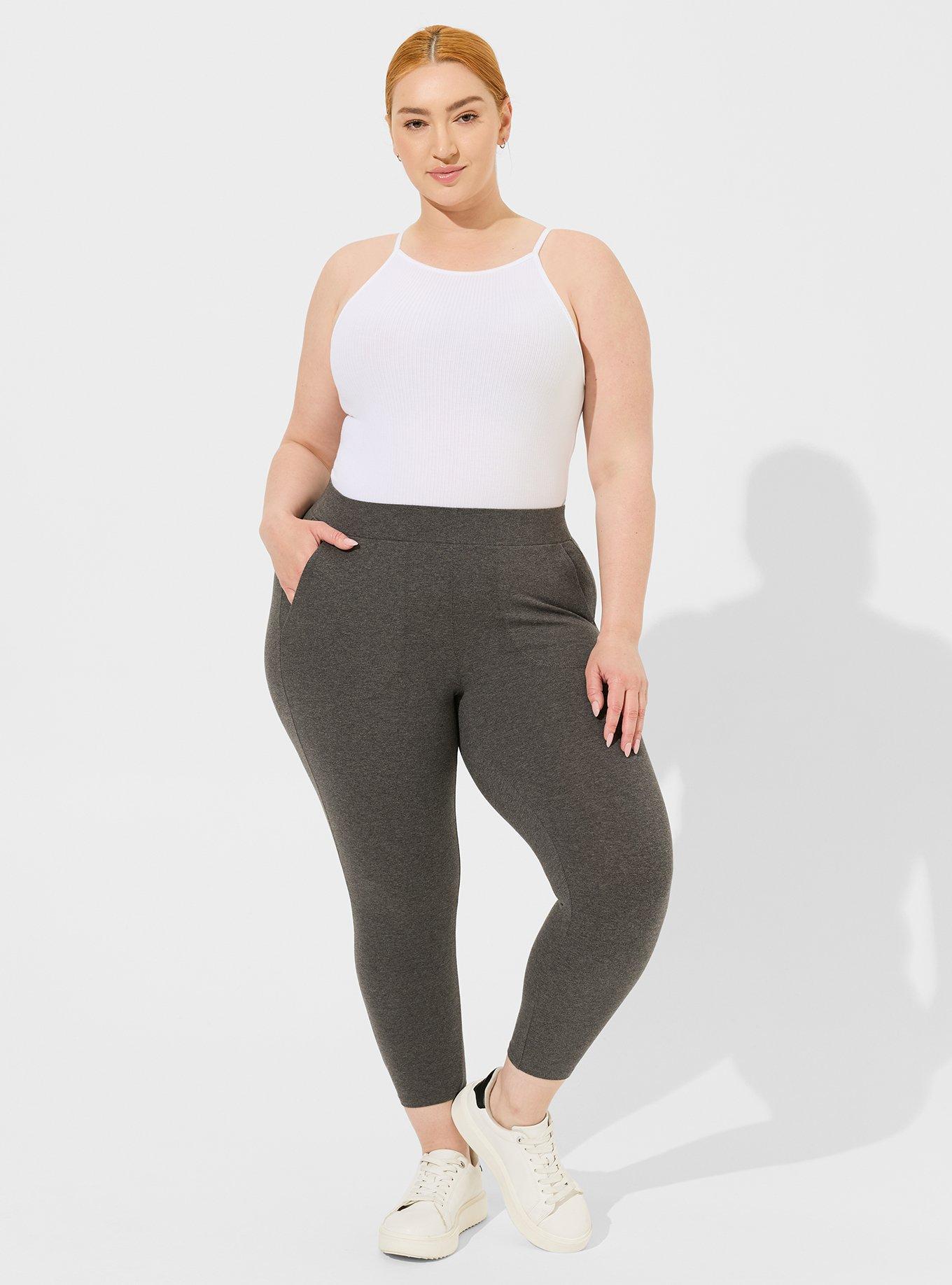 FIT High rise. 2'' Signature Waistband keeps things smooth and won't roll down. Tapered leg. Cropped length. 24'' inseam. MATERIALS + CARE Thick cotton-blend fabric that smooths and flatters. 4-way stretch with great recovery. 95% cotton, 5% spandex. Machine wash cold. Dry low. Imported. DETAILS Pockets. Opaque (not see-through). WHY WE LOVE IT These best-selling leggings are designed with the perfect fit, are totally opaque (no see-through leggings here) and keep things sleek and smooth—it’s no wonder they have rave reviews!