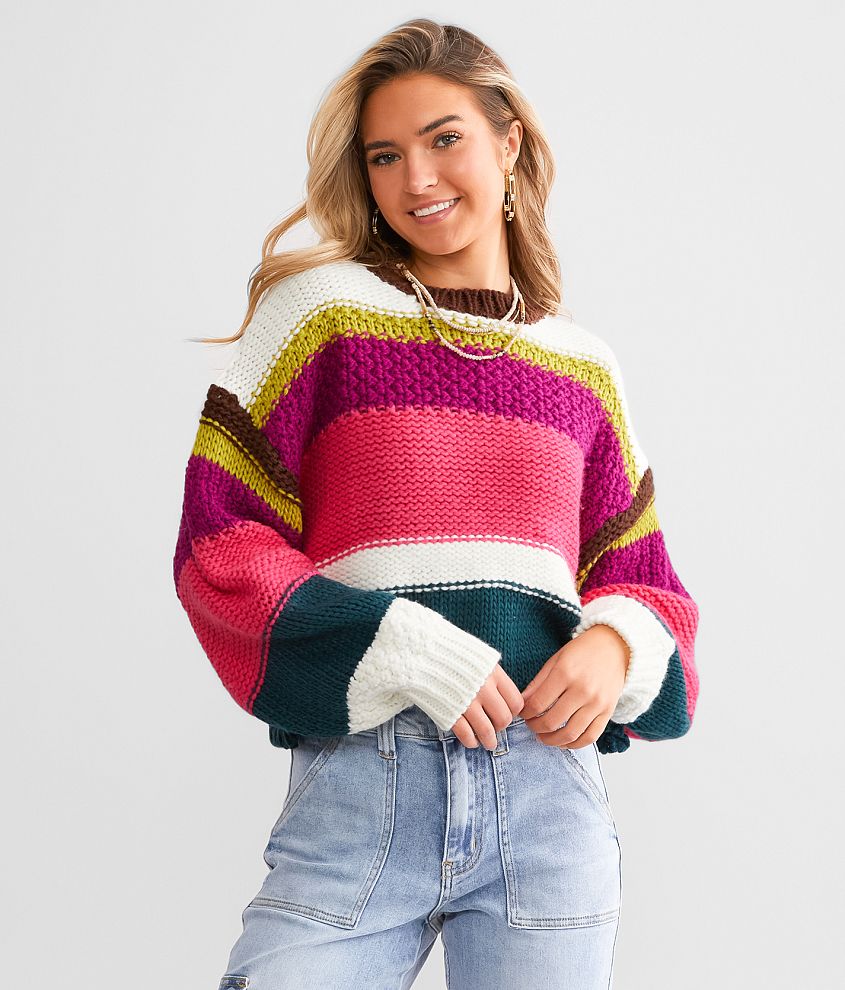 Striped open weave sweater Bust measures 40" on size small Body length 17" on size small