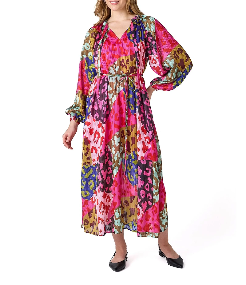 CROSBY by Mollie Burch Freya Lurex Chiffon Leopard Print V-Neck Long Sleeve Oversized Maxi Dress in Franklin, TN