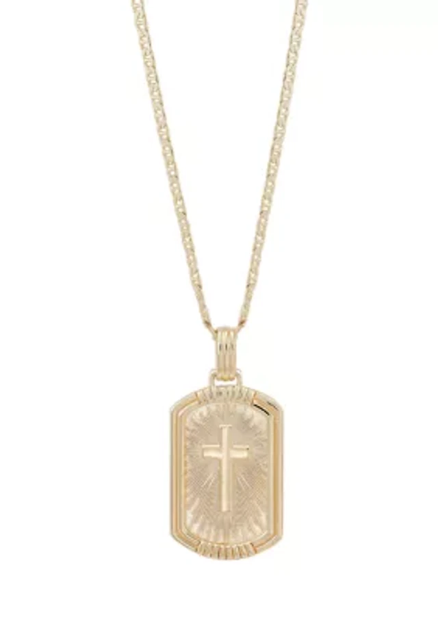 Cross Dog Tag Pendant Necklace with 22" Mariner Chain in Gold Over Sterling Silver