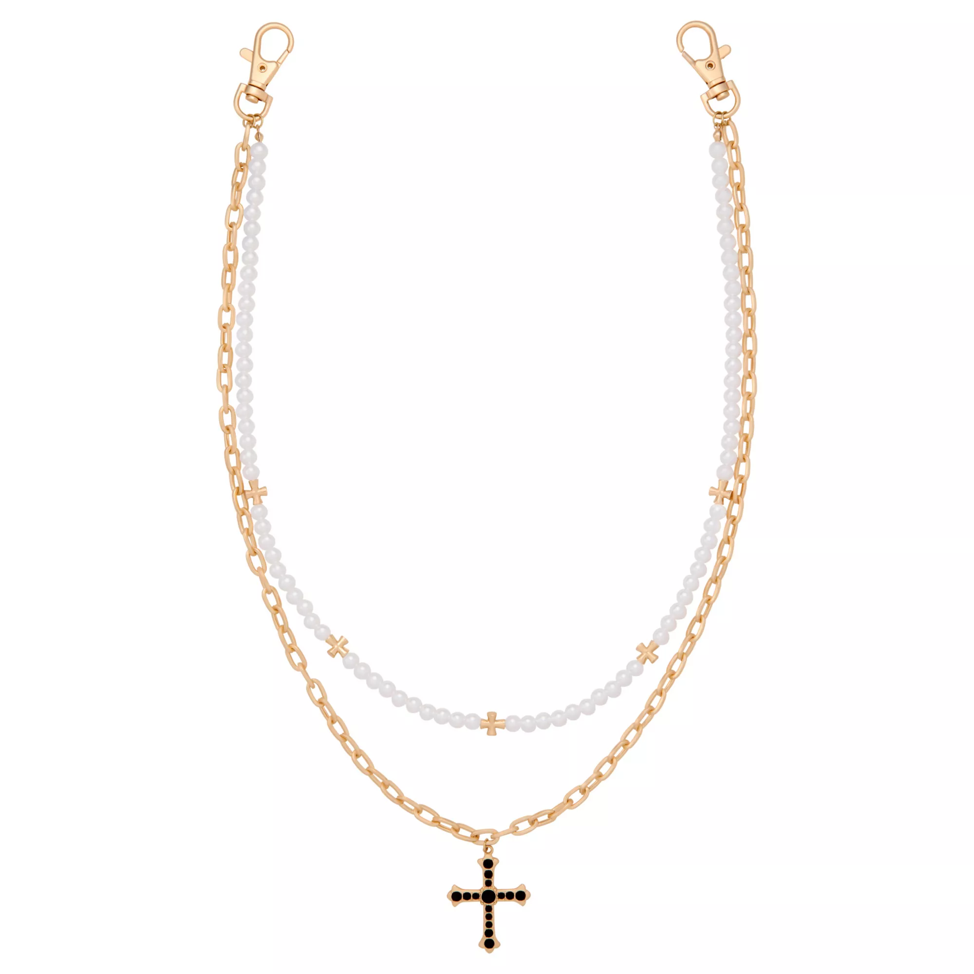 Cross Pendant Pearl-Effect and Gold-Tone Wallet Chain