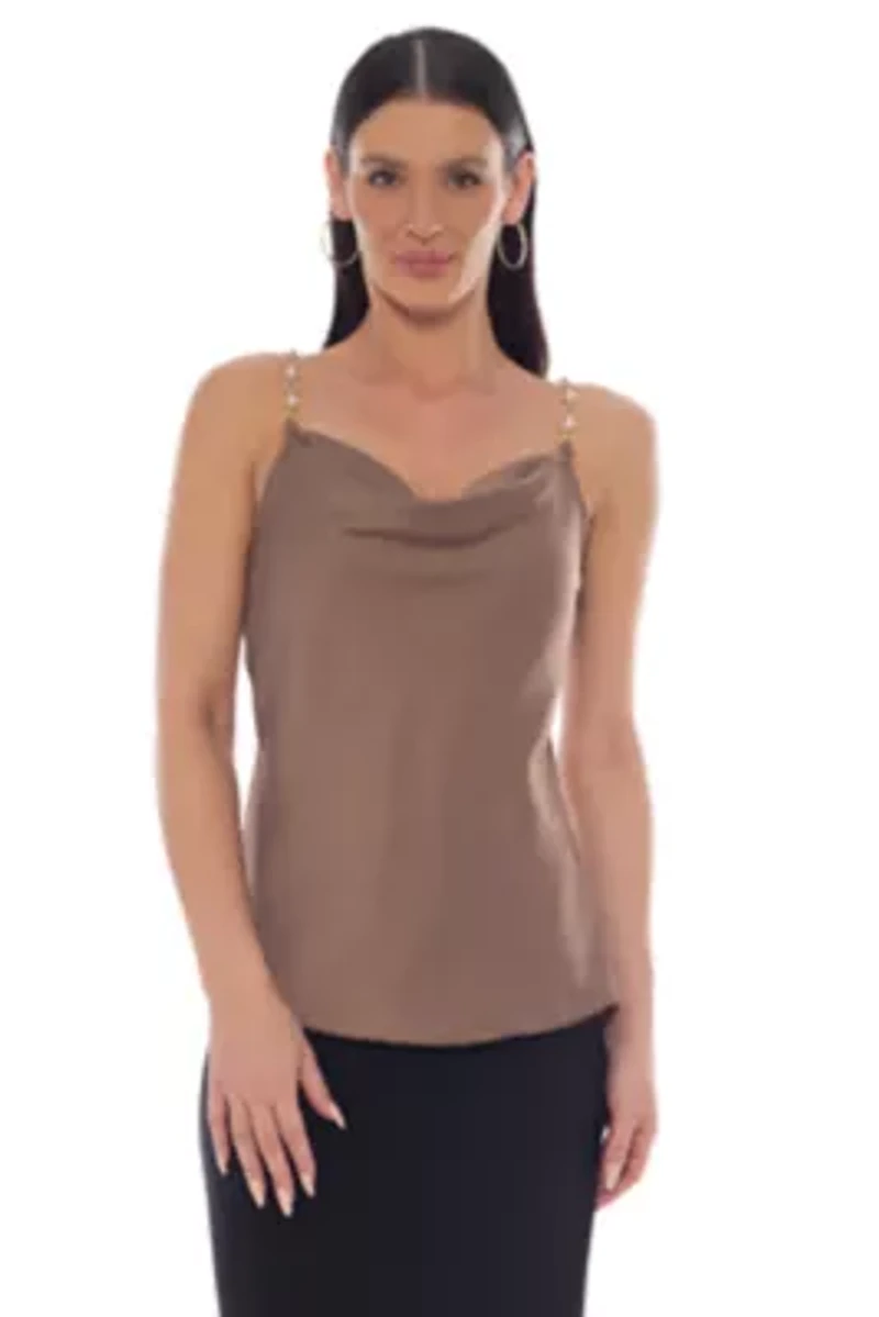 Crushed Satin Cowl Pearl Trim Tank in Franklin, TN