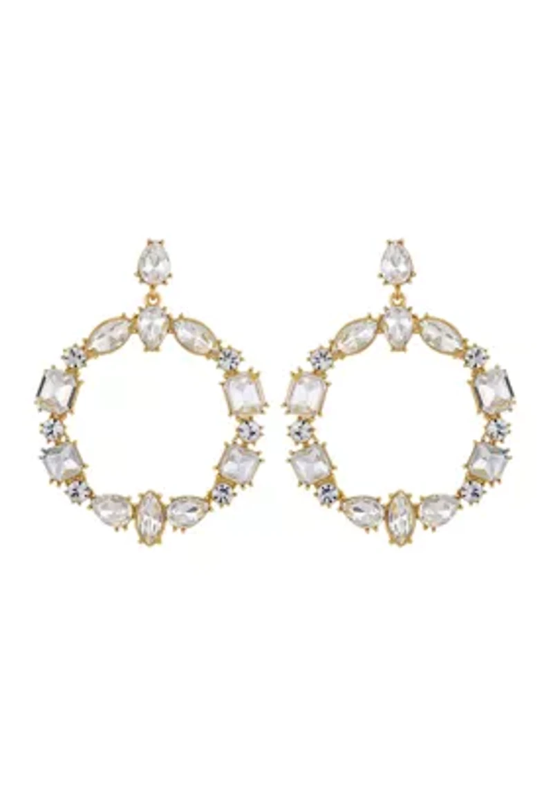 Make a statement with these stunning earrings, featuring a dazzling crystal cluster, adding a touch of sparkle and sophistication. The hoop design offers a modern and versatile style, perfect for everyday wear or special occasions. Post back Imported Material & Care Gold-tone metal Clean with a soft cloth