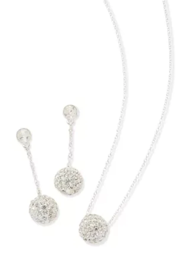 Crystal Fireball Linear Earrings and Pendant Necklace Set